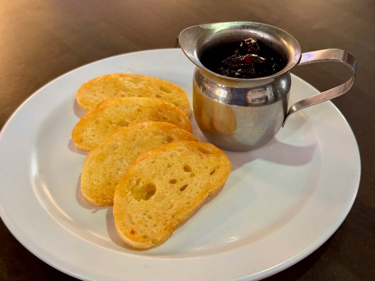 Breakfast is served with little slices of baguette toast and house made jam. The baguette was lightly toasted and buttery. The house-made jam is a mixed berry blend that carries a light citrus tartness, delectable berry flavor and just the right amount of sweet.