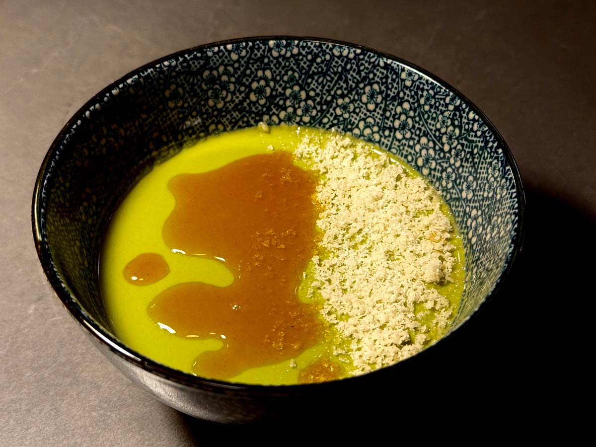 We closed our second visit with the matcha panna cotta. The panna cotta is delicately infused with matcha tea. The sauce is ginger golden honey. It’s topped with grated halva (a Middle Eastern dessert made with sesame, flour and honey). The panna cotta is silky, smooth and wonderful and the honey and halva make this dessert memorable.
