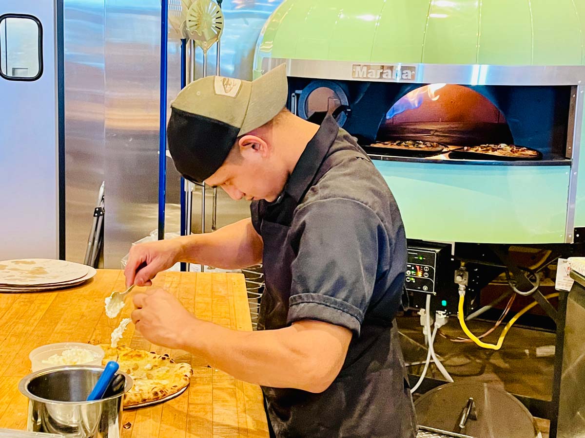 “To us, having a piece of Italy here meant a lot,” Maides said. The oven fits with the rustic décor, and its rotating base allows Maides and his staff to be faster and more efficient.