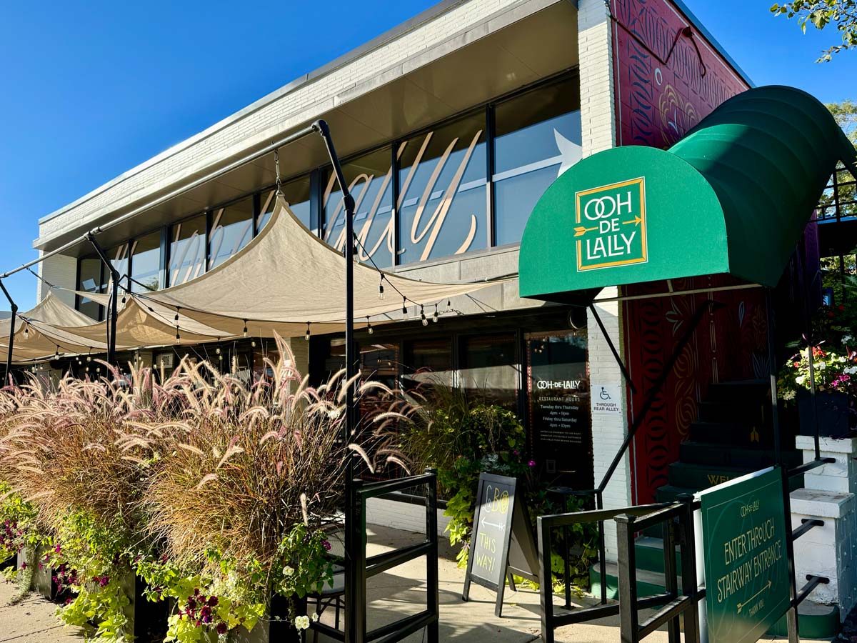 When you walk into Ooh De Lally, you’ll notice decor that’s both swanky and casual. Dark walls and a black ceiling are enlivened by warm lighting, panels of mirrors and natural wood tabletops. It feels kind of like an exclusive club that’s also casual and welcoming.